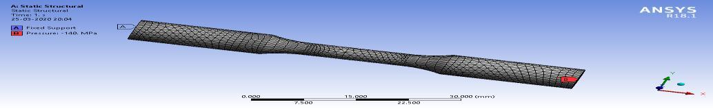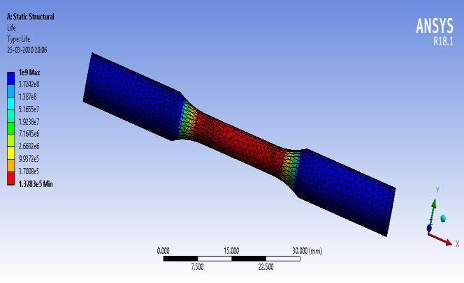 Tolerancelimits,Stress(vs.)FatigueLifecurvearecalculatedbyANSYS18.1.Forreplicatecircumstancesfortrial conducted, axial load with form for outward pressure is kept over right face, permanent assist is given to left face for sample.