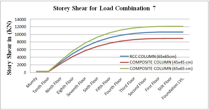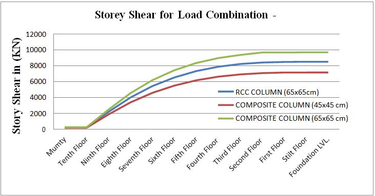 DISCUSSION:MaximumStoreyshearforframewithRCC columns(65x65CM)is17%to19%higherthantheframe with composite columns (45x45cm). Storey shear in