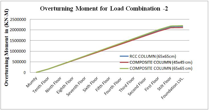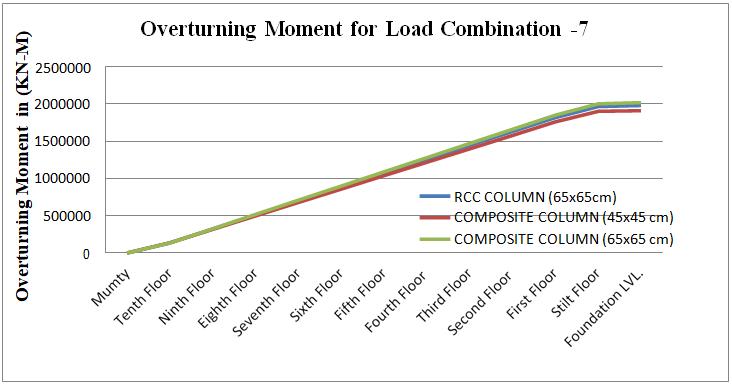 DISCUSSION: Overturning Moment in Frame with composite columns of size 45x45 cm is marginally lower thanRCCcolumnsofsize65x65cmduetoreducedweight.