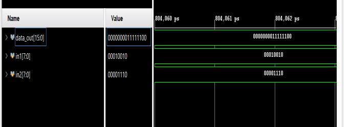 Multiplier Area(inLUT) Delay(inns) Booth Multiplier 216 25.860 ArrayMultiplier 130 23.106 Wallace Multiplier 145 16.678