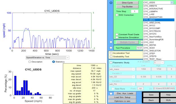 ● TheuserdefinestheeventoverwhichthecarwillbemodeledintheADVISORsimulationsetupwindow(Fig.3.2).The followingaresomeoftheoccurrencesthatcouldbesimulated:Asingledrivecycle,severalcycles,anduniquetesting techniquesareallavailable.Theupperrightcorneroftheset-upwindowgivestheopportunitytochoosedifferent drivingcyclesasperdesireoftheuserwhichtheusercanagainseeintheright-handcornerofthewindow.Inthe simulationmode,itallowstheusertoselectcyclesanddefinesimulationparametersinformationabouttheselected cycleswhicharepresentedintheleftportion.