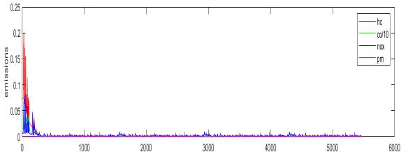 Theconventionalvehiclewassubjectedtotestingasperchosendrivingcycleurbandynamometerdrivingschedule(UDDS)for comparisonpurposes.Fig.5.1.showstheemissionplotfor aconventionalvehicle.