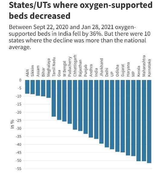Inourcountrymanycitiesreportingachronicshortageof ICU beds.And also in many social media platforms like instagram, twitter, facebook,…there are spreading and making viral for getting help. some reports saying that people dying without getting required treatment in time are coming from all over the country Twenty out of 28 districts in chattisgarh, 36 of the 12 districts in Maharashtra,52ofthe13districtsinMadhyaPradeshand 22ofthethe8districtsinPunjabhavinglackofbedsdueto lackofavailabilityofbedsriseinnumberofCovid-19cases takesplace.