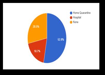 Onquestioningifanyofthemaffectedwithcovid19,HowdidtheygottreatmenteitherbyHOME QUARANTINE or HOSPITAL 52.8% people reported they are Home Quarantined , 18.7% people reported that they went to hospitals for getting treatment and remaining 28.5% people neverencounteredcovid-19.