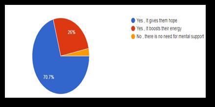 questioningthepeopleweathertheythinktheremust bementalsupportalongwithphysicalsupport70.7% answered Yes, it gives them hope , 26% people answeredYes,itbooststheirenergyand3.3%people answeredthereisnoneedformentalsupport.