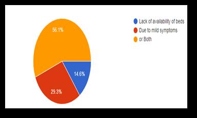 Next onquestioningWhydoyouthinkmanypeople choose to be Home Quarantined 14.6% people answeredthatDuetothelackofavailabilityofbeds, 29.3% peopleanswered due to mild symptoms andremainingmajor56.1%peopleansweredBOTH.