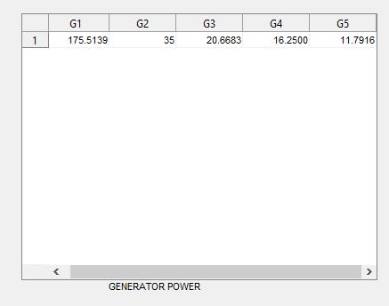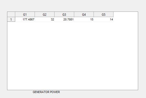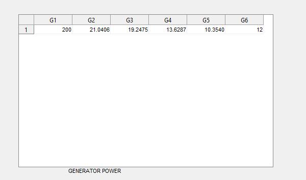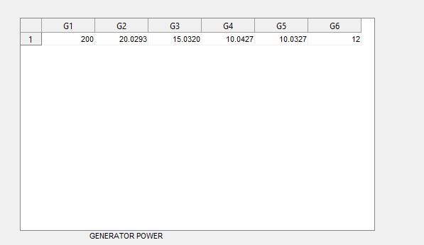 GeneratorPower G1 200 200 G2 21.046 20.029 G3 19.24 15.032 G4 13.62 10.42 G5 10.35 10.03 G6 12 12