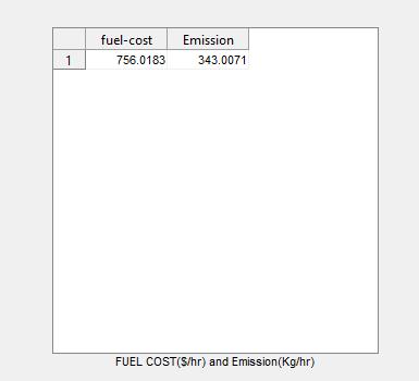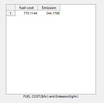 FuelCost(rs/hr.) 775.11 756.0183 Emission(kg/hr) 344.1790 343.0071