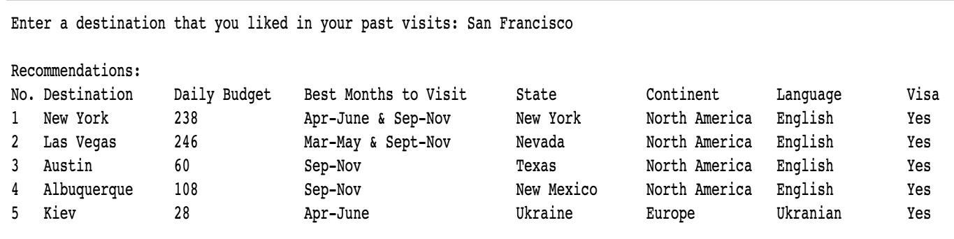 Output when the user enters “San Francisco” as his preferreddestinationisshowninFig-3.
