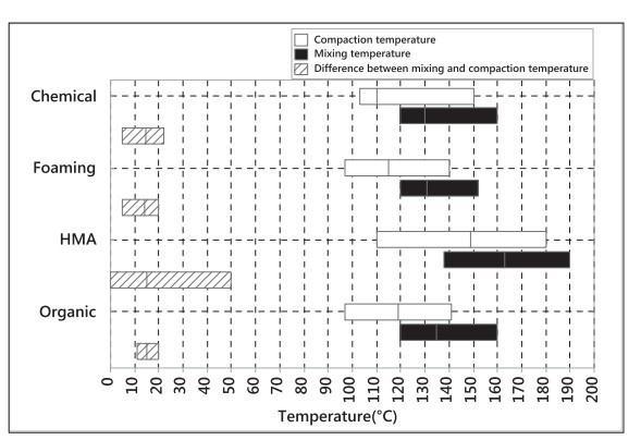 FIG. 2 Range of production temperature of WMA technique