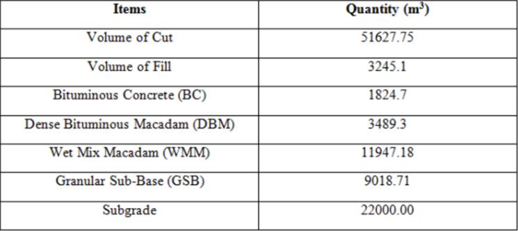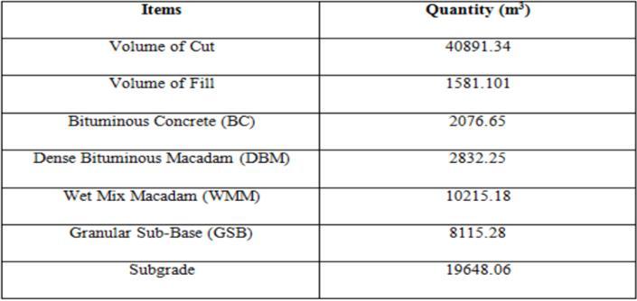 Table-1: EarthworkVolumeReportGeneratedinCivil3D.