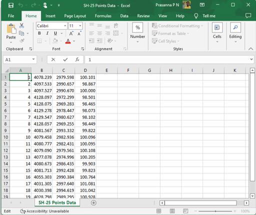 Thedata for thisstudy wasgatheredfromPIXEL and was made up of survey data of the current ground surface in .dwg (drawing) format. The study's point data was then extracted and saved in .csv (comma-separated values) formatusingtheMicrosoftExcelsoftware.Thispointdata containsthecoordinatesX,Y,andZ.(i.e.,Northing,Easting and Reduced Level). The input was in PNEZ format i.e., Points,Northing,Easting,andElevation.