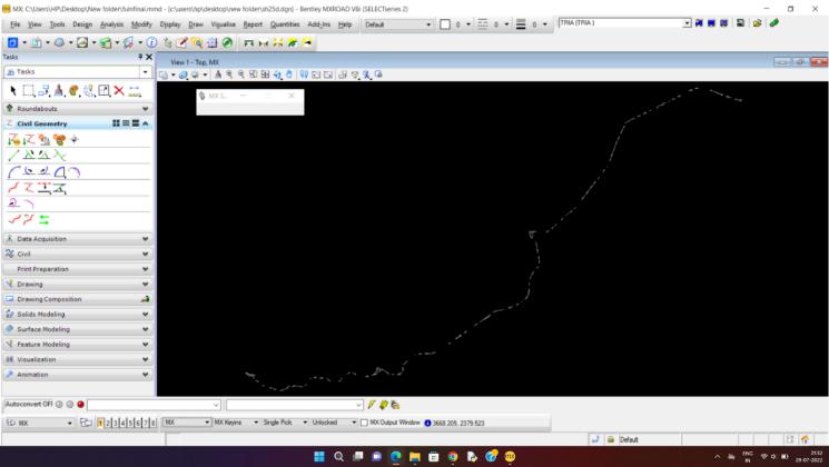 Fig-11: HorizontalAlignmentCreatedinMXROADusing ElementMethod.