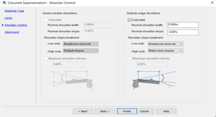 Fig-8: DesignofSuperElevationwithShoulderControlin Civil3D.