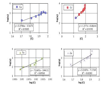 Fig-2.4Freundlichgraphsforasampleofsiltysandsoil