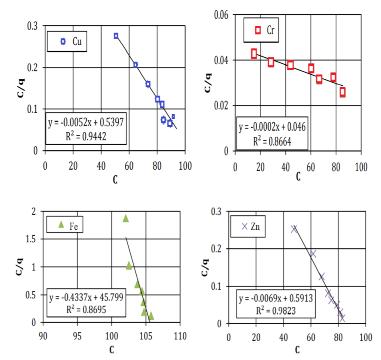 Table 2.3 contains a prediction of the analytical resultsofthelinearregressionproducedbytheFreundlich andLangmuirmodel.Forafewchosensoilsamples,itcanbe stated that the linear regression findings from the FreundlichandLangmuirmodelsarequiteacceptable..The R2 numericalforallsamplesfrom0.80and0.95,expectfor theCufortheclayeysoilforFreundlichmodel,whichis0.61.