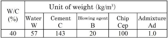 The bamboo chips are Madake bamboo (Phyllostachys bambusoides)orMosobamboo(Phyllostachysheterocycla f. pubescens) which have been pulverized with a chopper and dried to a moderate degree. There is no need to consider the moisture inside the bamboo through drying and it does not affect the water-cement ratio. However, it doesnothavetobecompletelydry.