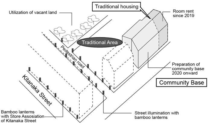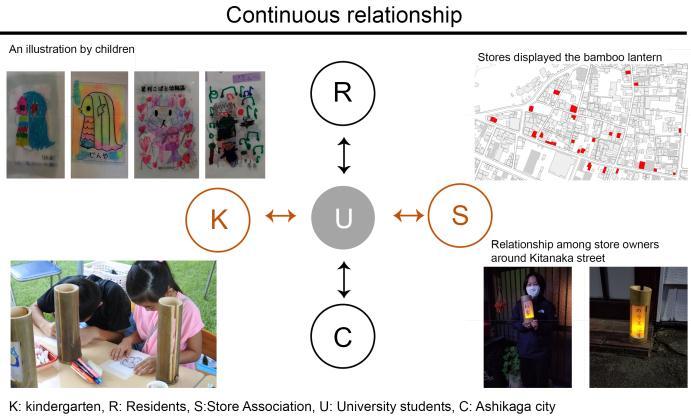 Various events have been held using bamboo lanterns since 2015 [7&8]. In addition, instead of holding the bamboolanterneventasatemporaryevent,thebasefora regional collaboration project was set up in the Yukiwa area in Ashikaga City to study and practice a method for supportingactivitiesoflocalpeople(Fig.4).
