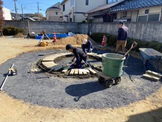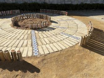 The following two problems came to light when proceeding with the bamboo lantern events. 1) The bamboo cylinders used for the bamboo lanterns are damaged considerably in one year, and 2) in the case of long-term exhibitions, there are legal rules regarding the useofroads,andthebamboolanternsmustbefixedtothe ground. As a solution to these problems, the development of bamboo fiber blocks was started to create a pavement materialmadebypulverizingbamboocylindersandmixing themwithcementafterusingthemforbamboolanterns.