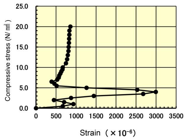 Byapplyingapressureofabout60KN,thetestpiecesof all types became approximately 100W× 400L×60H mm. After air-dried curing, bending strength and compressive strength were measured after 28 days according to JIS (Japan Industrial Standard) A 1106 and JIS A 1108. In addition, the strain was measured with a strain gauge whilemeasuringthecompressivestrength.