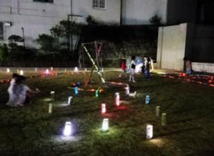 Bamboolanternsarebamboocylinders25cminheight with a hole in the side andan LEDlight inside. Theyare a device for brightening the nightscape and are lined up on theroadsideandinthesquaretoilluminatetheground.