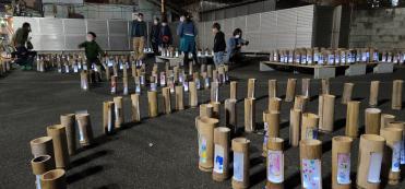 The bamboo lantern events raised awareness in the region and achieved certain results. However, the large number of used bamboo cylinders for the lanterns was a major problem. Moreover, the bamboo cylinders decay in about a year and become unusable. Therefore, further action is necessary. Bamboo cylinders can be reused to create bamboo fiber blocks by pulverizing the bamboo cylinders.