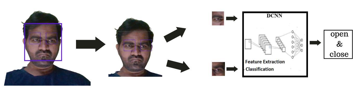 Using an eye state dataset, a DCNN-based approach is used. Was intended for automated identification of eye condition(open/closed).or(closed)inthisstudy.