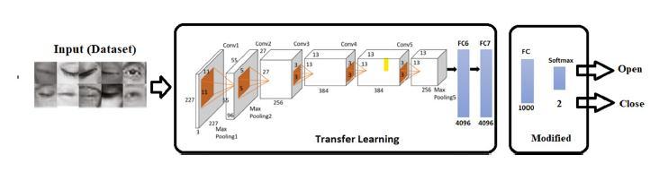 Deep learning technique advancement, as well as recent advances in artificial intelligence, has encouraged the creation of new approaches and concepts in picture classification. Because of CNN's excellent performance in image classification, one of the sub-branches of machine learning has had a significant impact in so many imagebasedtechnologies.Asaresult,insteadofthehand-crafted feature extraction methodologies used in previous research, the use of deep learning-based, specifically transfer learning-based techniques in eye state recognitionhasemergedasanintriguingcapacityinterms ofbothaccuracyandefficiency.