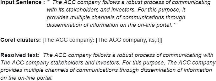 Fig.2.NeuralCorefidentifiesthecoreferencesforanentity TheACCCompany intheaboveexampleandresolvesthem byreplacingwithanentityname.