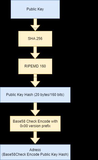 Some blockchain networks utilize an address, which is a brief string of alphanumeric characters created from the user's public key on the blockchain network using a cryptographic hash function, coupled with some other information (e.g., version number, checksums). Addresses are often used as the "to" and "from" endpoints in a transaction in blockchain systems. Addresses are not privateandareshorterthanpublickeys.Apublickey can be created, subjected to a cryptographic hash algorithm, andthenconvertedtotexttoproduceanaddress: