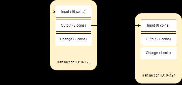 Input-Alistofthedigitalassetstobetransferred oftenservesastheinput. A transaction will make a reference to the origin event for new digital assets or the prior transaction where it was delivered to the sender in order to provide provenance. The digital assets remain unchanged sincetheinputtothetransactionisareferenceto earlier occurrences. This means that existing digital assets in the case of cryptocurrencies cannot have value added to them or subtracted from them. Instead, a single digital asset can be divided into several new ones, each with a lower