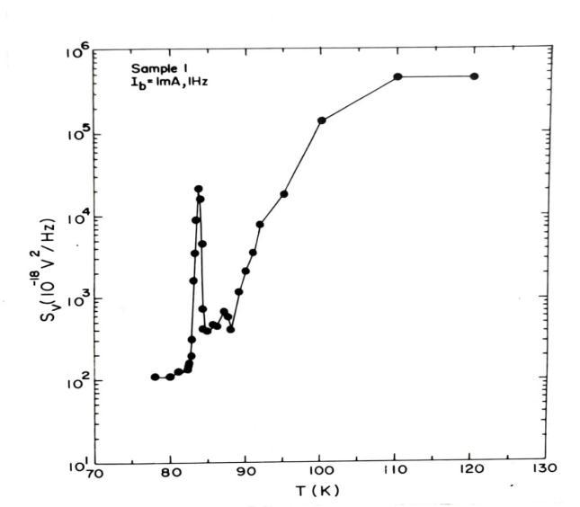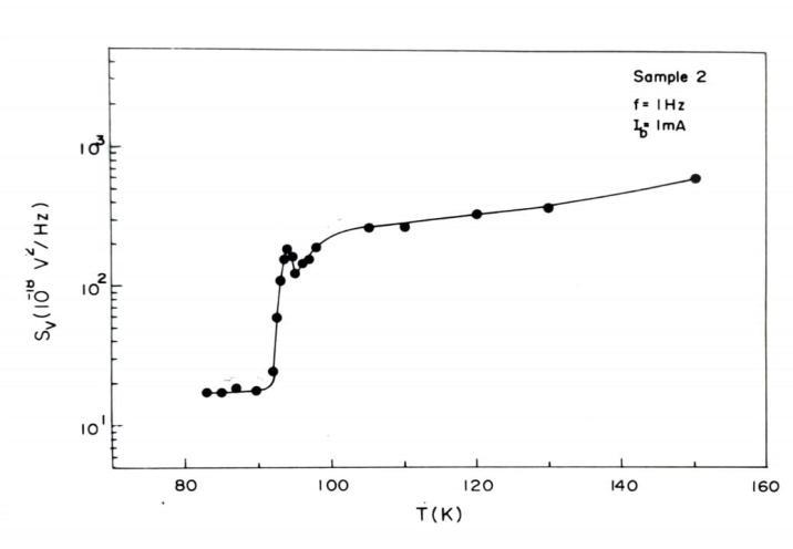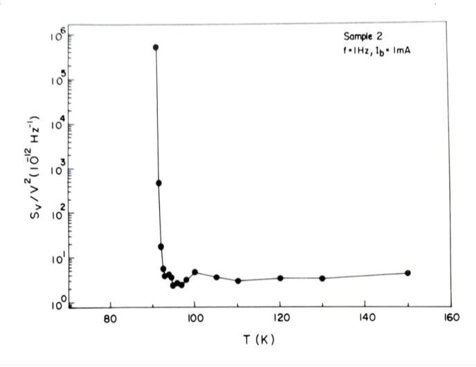 Figure 8. showsthetemperaturedependenceof normalizednoiseSv/V2 forYBCOthinfilmsample2.