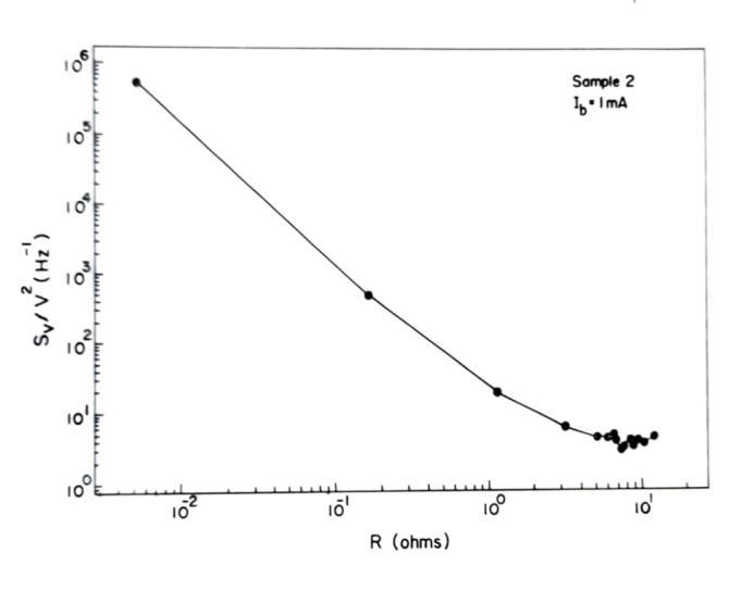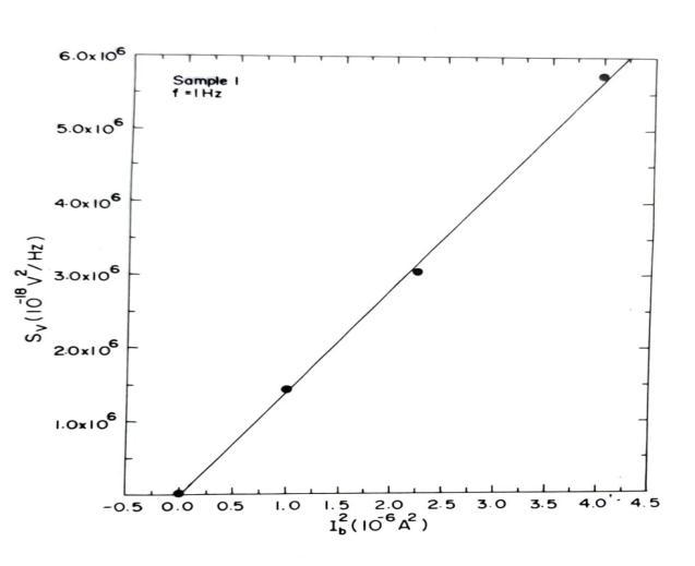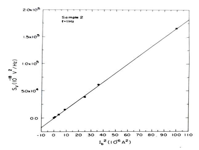 noise Sv (1Hz, 300K) as a function of biasing current Ib for sample 2