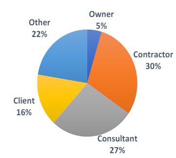 Figure 2 reveals that the respondents who filled the questionnaire,5%werefromowner,30%fromcontractors, 27%fromconsultants,16%fromclientsand22%fromother. The demographic statistics data indicates that majority of individualsareprofessionalwhofilledthequestionnaire.