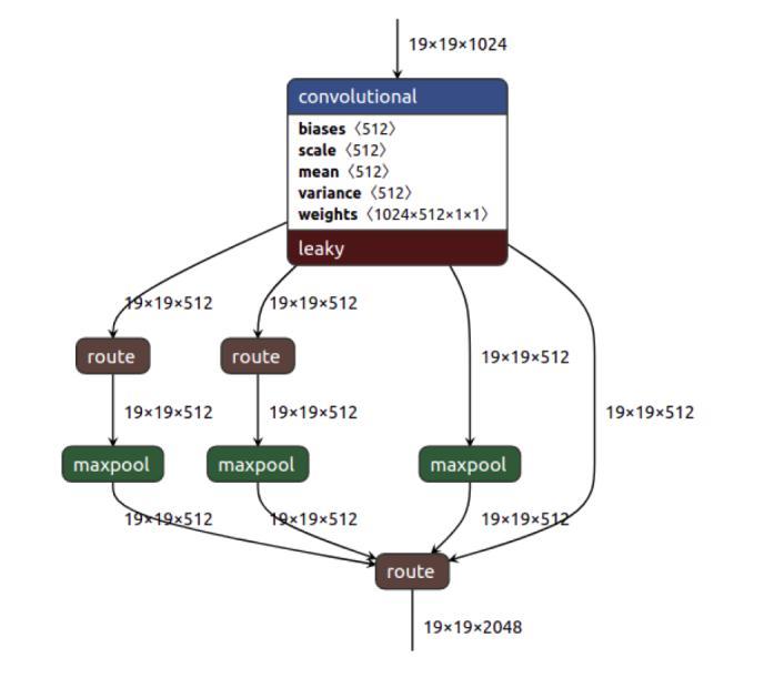2)Neck:Everyobjectdetectorhasabackboneinfeature extraction and a head for object detection. To detect an objectatdifferentscales,ahierarchicalstructureisproduced with head probing feature maps at different spatial resolutions.Toenrichthefeatureinformationfedintothe head,neighbouringfeaturemapscomingfromthebottomup ortopdownstreamareeitheraddedorconcatenatedbefore feeding into the head. YOLO v4 uses modified spatial pyramid pooling (SPP) “Fig. 4” [19] and modified Path AggregationNetwork(PAN)[20]