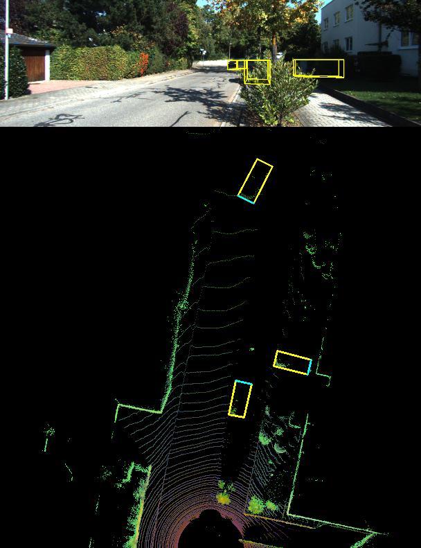 Fig.7.ModelpredictioninKITTI[9]testdata.The upperpartisreprojectionofthe3Dboxesintoimage space