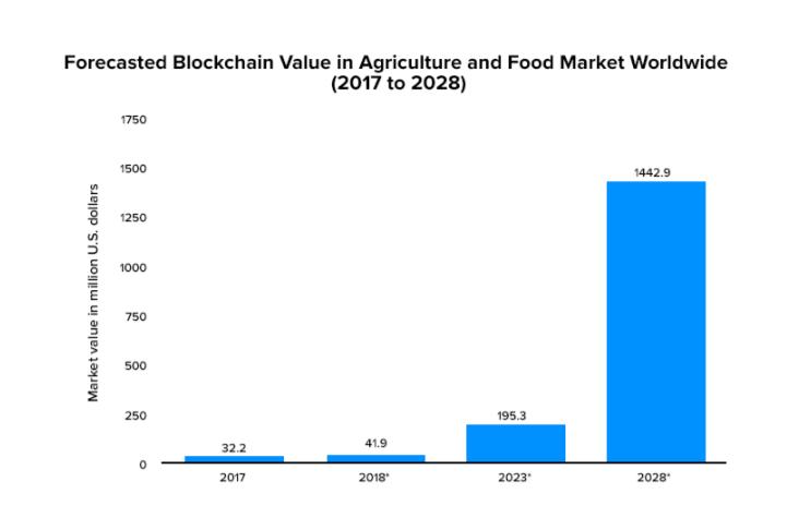 Accordingtothisreport,blockchaintechnologyisexpected to have a big future impact on the agriculture sector and severalrelatedverticals.