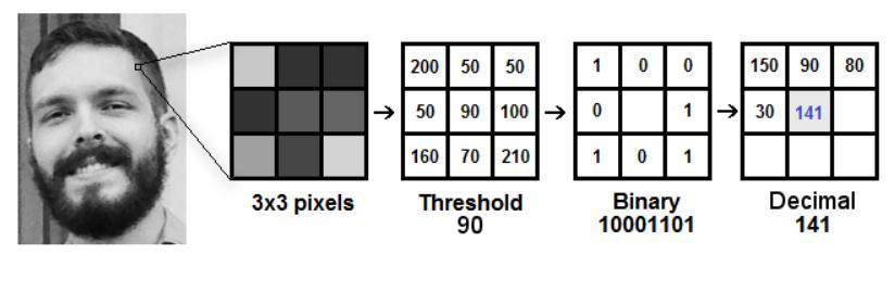 TheinitialcomputationalstageoftheLBPHistoproducean intermediateimagethat,byemphasizingthefacefeaturesof the original image, more accurately describes the original image.Themethoddoesthisbyutilizingaslidingwindow ideadependingonradiusandneighbour.Theprocedureis shownintheimage.