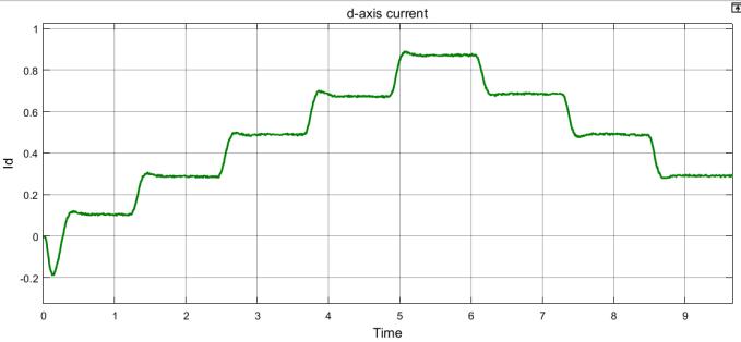 The tracking of the d-axis current is depicted in Fig. 16 and indicates that current is closely tracking the necessary reference value to guarantee the transfer of the greatest amount of solar energy to the grid. Additionally, Figs. 18 and 19 depict the power