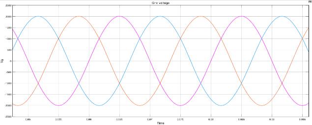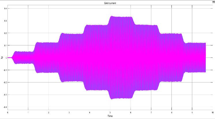 Figures14and15,whichshowthe3-phasegridcurrent and voltage, respectively, validate the voltage balancing & boosting with the better power quality in grid linked operation. The current response indicates that the ac current going to the grid varies in response to changing irradiation levels and ensures export of the maximum amount of solar power under varying weather conditions(Fig.18).