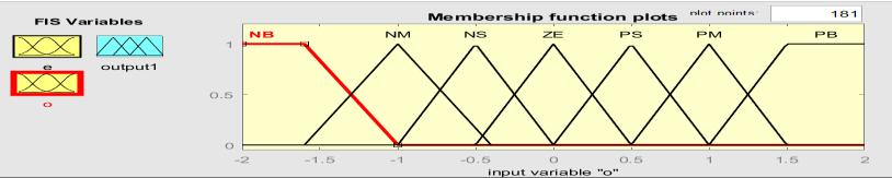 Crisp values will become fuzzy quantities through fuzzification [34]. Fuzzy subsets are used to assign membership function values to the linguistic variable Membership function plots of the two inputs and the outputareshownindividuallyinfigure3.Thetwoinputs are fused into the Mamdani model to get required changeindutycycle.