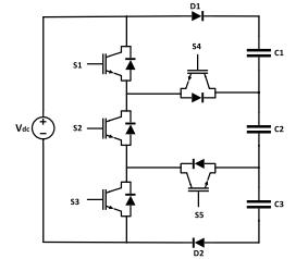too many capacitors in higher levels of output voltage [5], and 3) Neutral point clampedMLIs also need multiple DC sources and struggle with balance issues becauseoftheircapacitorusage.