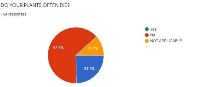 Onaskingwhethertheirplantsoftendieornot63.6% saidno,24.7%saidyes,11.7%saidnotapplicable.