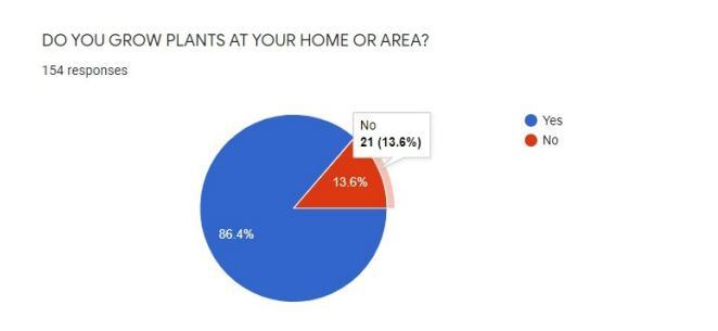 Onasking whetherpeople grow plantsat their home 86.4%saidyesand13.6%saidno. ļ¬