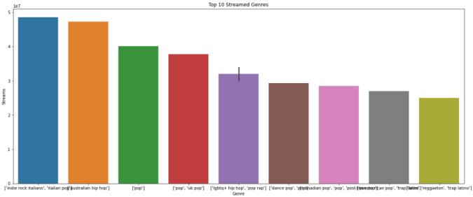Figure9showsthatthegenres,IndierockItalianohavethe higheststreamswhiletraplatinohasthelowest.
