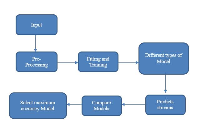 Methodology section of the paper explores the different methods which we have applied on the Spotify dataset to predictthenumberofstreamsofasong.Thedatasetisused in multiple cases of data visualization and predicting an approximate number. Fig 1 displays a flowchart of the methodologywhichhasbeenusedandimplementedinour research and includes data cleaning, its display on graphs and usage of various regression models and obtain appropriateresults.