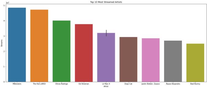 Figure8showsthattheartists,Maneskinhavethehighest streamsfortheirsongwhileBadBunnyhasthelowest.