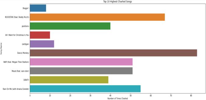 Figure7showsthatDanceMonkeyisthemostchartedsong whileBeggin’istheleastchartedsong.