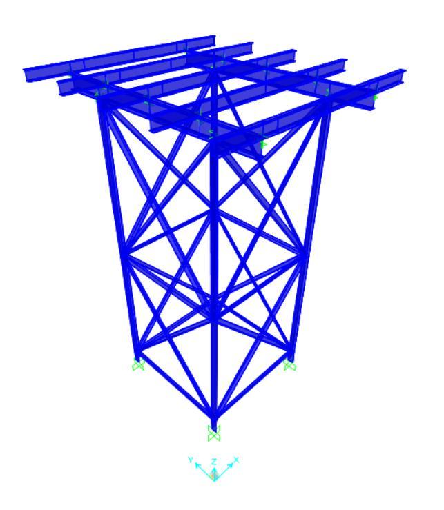 The SMC Panel Water tank is modelled as mass acting on bearers. The load is applied as uniformly distributed load. Thedimensionofthetankis3mx3mx3m.Thedimension of the tank is given by SMC Panel Company. The steel Isectionisusedasbearerandlowerbeam. Forcolumnsand bracings angle section is used. The joints assigned is fixed joints as it assumed to be rigid connections. The plan and elevationisshowninFigure2.