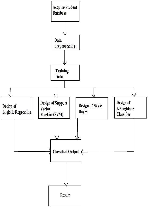 After the training of the designed neural network, the testingoflogisticregression,supportvectormachine,Naive Bayes,andKNeighborsClassifierisperformedusingtesting data.Basedontestingdata,theaccuracyoftheclassifieris determinedandthealgorithmwiththemaximumaccuracy isusedforthebestpossibleoutcomeorprediction.